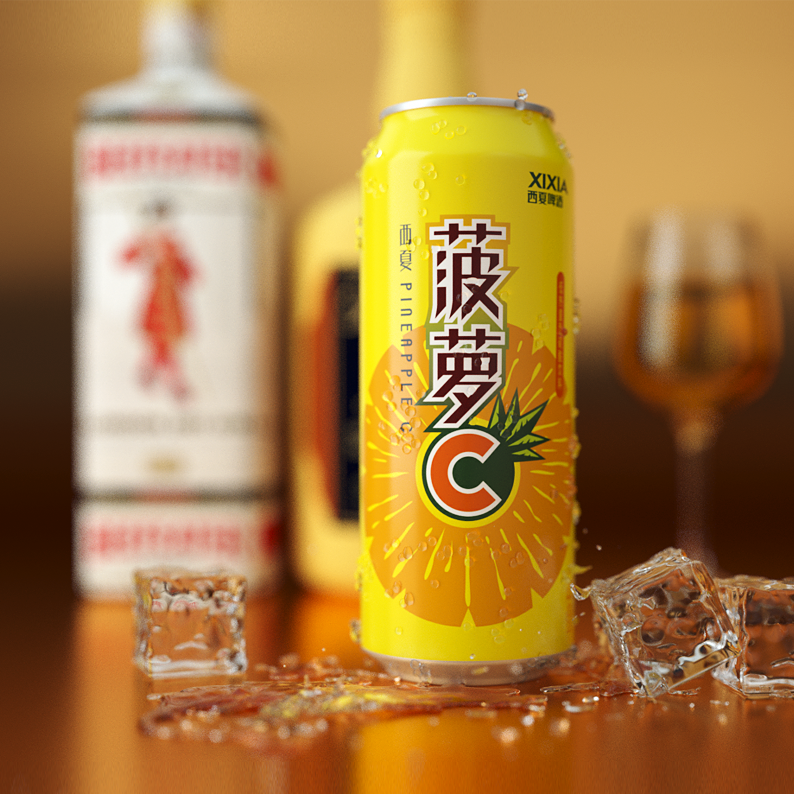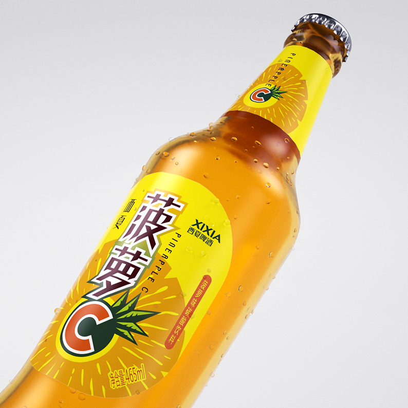 As product upgrading of Xixia pineapple C, Carlsberg's headquarters and Xixia's brand proposed to retain the original pineapple C brand structure, so the new product is mainly designed by the product name of pineapple C. The pineapple shape in the base drawing adopts the form of silhouette to form the symbol of graphic recognition. The overall packaging is mainly orange and bright yellow, and the product packaging is beautiful and fashionable, which is in line with the positioning of terminal women as the main consumer group. This is another sublimation of Xixia pineapple C. I believe that the new product will be sold well on the market.